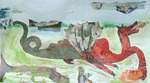 2006Twee koppige draak die vuur spuwt. Een man probeert draak te temmen of te bezweren.
